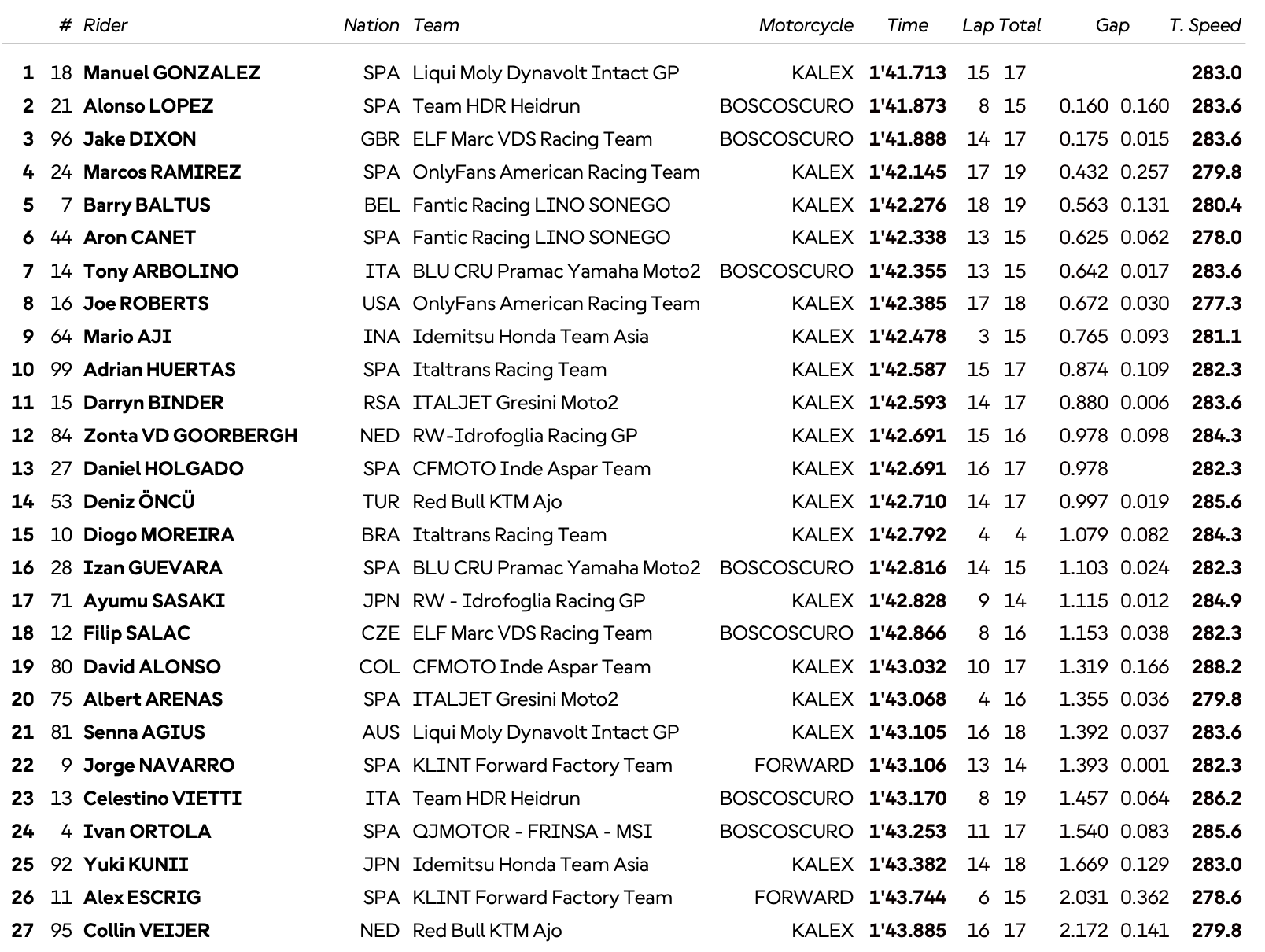 Argentine, Moto2 (PR) : Gonzalez en tête, Baltus 5e !