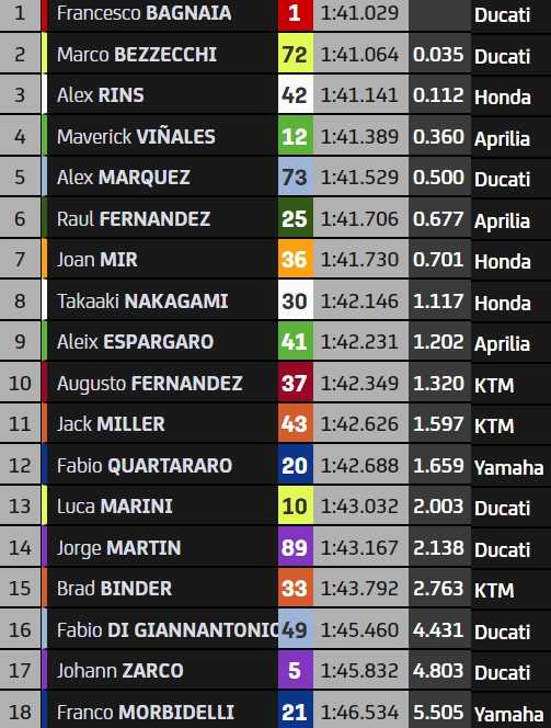 Les Essais Libres (Free Practice) du Grand Prix d’Argentine ont été dominés par les Ducatistes Francesco Bagnaia et Marco Bezzecchi devant la Honda d’Alex Rins. La pluie est arrivée en cours de séance et ont freiné les améliorations. Douzième, Fabio Quartararo n’y arrive toujours pas à quelques minutes de disputer la Q1.