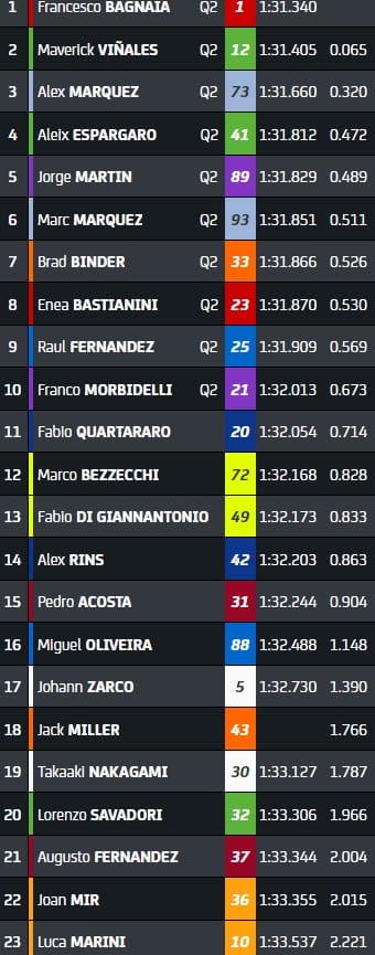 Assen, Essais MotoGP (top-10 directement en Q2) :