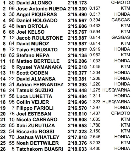 Austin (GP des Amériques), Essais 1 Moto2 (top-14 provisoirement en Q2) :