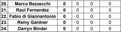 20. Marco Bezzecchi (Ducati) – 0 (-45)