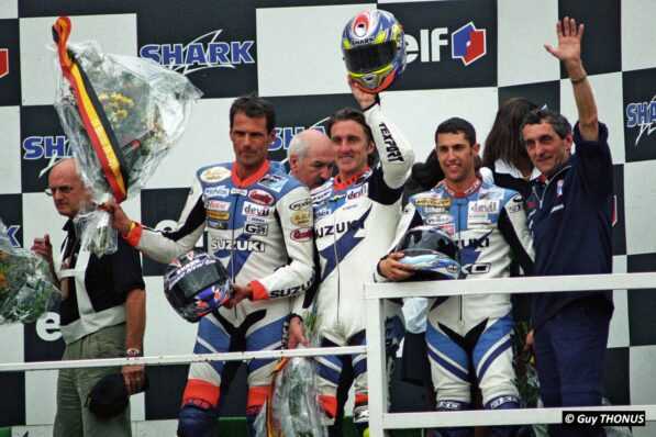 C.L : « J’ai effectivement gagné quatre fois en une dizaine de participations et j’en conserve d’excellents souvenirs, mais c’était toujours des courses difficiles. Une épreuve d’endurance de 24 heures est toujours épuisante, mais à Spa, c’est encore plus dur ! Je me souviens très bien de ma première participation, c’était en 1991 et je n’avais jamais roulé sur ce circuit très exigeant de plus de sept kilomètres. On a eu un déluge pendant 23 heures sur 24, c’était l’enfer ! Il fallait couper les gaz dans les lignes droites pour ne pas partir en aquaplaning ! Je te laisse imaginer que les combinaisons de pluie de l’époque n’étaient pas très efficaces, et on était trempés en quelques minutes. Très sincèrement, ce sont surtout mes deux coéquipiers, Dominique Sarron et Stéphane Mertens, qui ont le plus roulé, mais on a quand même réussi à gagner, dès ma première participation. Le soleil est juste revenu à une heure de l’arrivée et pour le podium ! »