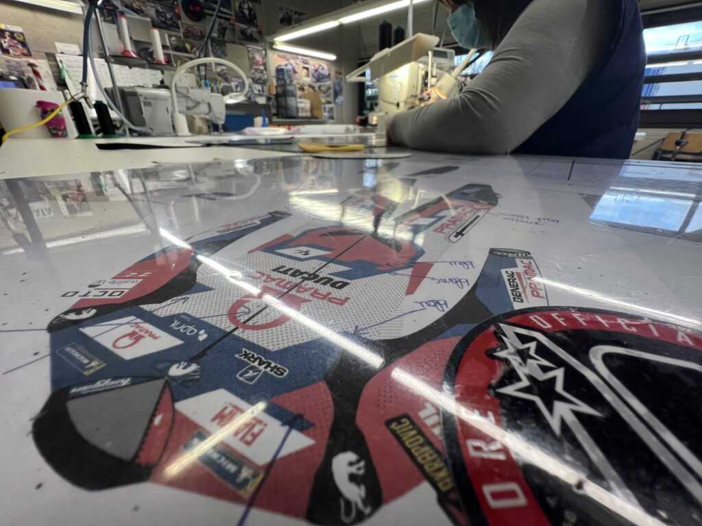 Adrien Chareyre : « Il y a deux parties distinctes. La première se passe ici, à Nîmes, où je me charge de la confection et de l’acheminement des combinaisons à nos pilotes en fonction de leurs plannings, en sachant qu’il nous faut environ trois jours pour produire une combinaison à partir du moment où le design est figé. C’est donc un travail d’anticipation et d’organisation qui demande une grande rigueur, car chaque pilote a son propre planning. Et la deuxième partie, c’est le Racing Service, où je m’occupe des pilotes pendant les GP, c’est à dire six pilotes en comptant les deux qui roulent en MotoE. À chaque séance le matériel est vérifié, nettoyé, préparé pour être prêt pour la séance suivante. Et crois-moi, le timing est serré entre la séance du matin et celle de l’après-midi. En général, chaque pilote dispose de quatre combinaisons par GP. »