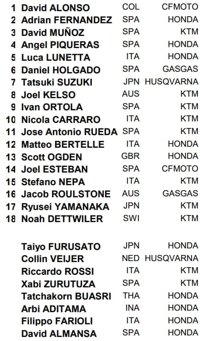 Championnat Moto3 - Pilotes encore titrables (post-Mandalika) :