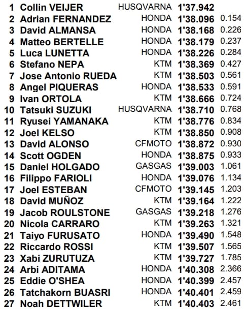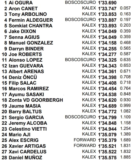 Mandalika, Essais 1 Moto2 (top-14 provisoirement en Q2) :
