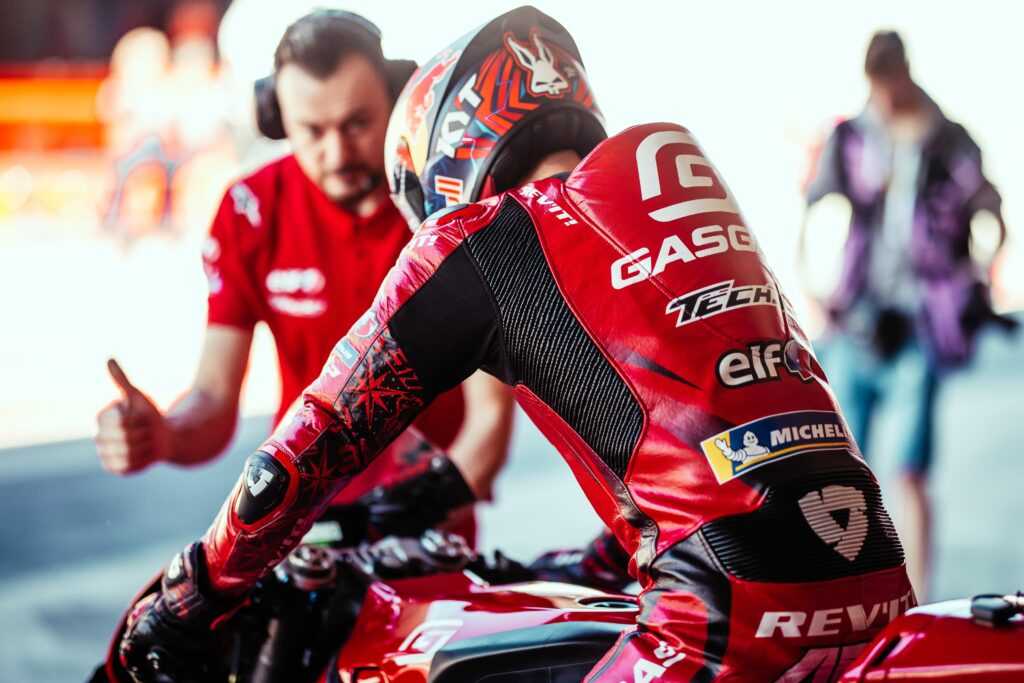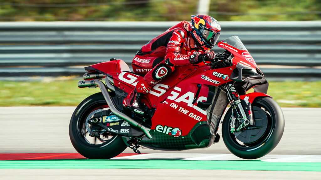 Rares sont les équipes à changer de couleurs en 2023. C’est le cas de la structure Tech3, devenue GasGas Factory Racing Tech3. Pol Espargaro et Augusto Fernandez ont étrenné la KTM/GasGas RC16 toute de rouge vêtue pour la première fois lors du Test de Portimao. Ça donne quoi ? Quelques photos pour vous faire au nouveau design des pilotes espagnols.
