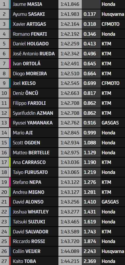 Le Mans (GP de France) – Combiné Essais Moto3 : Les 14 premiers vont directement en Q2, les autres passeront par la Q1.
