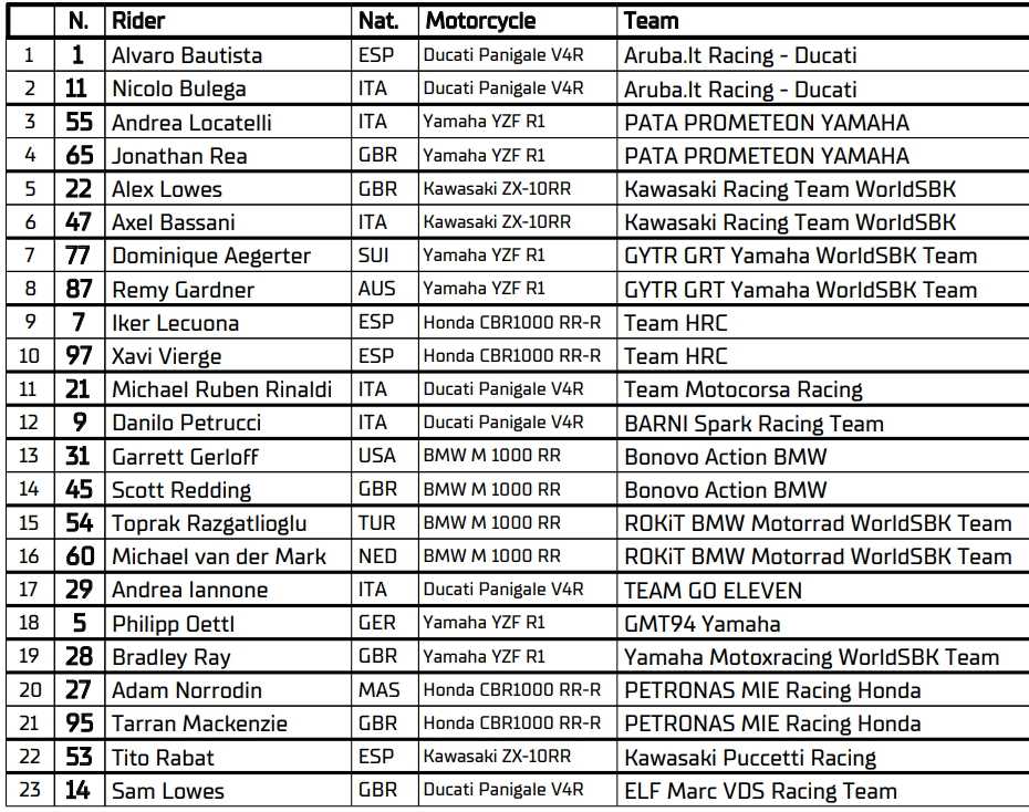 Les 23 pilotes du Championnat du Monde Superbike 2024