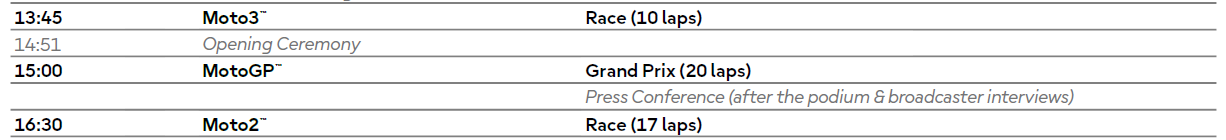 Suite à la collision entre José Antonio Rueda et Noah Dettwiler avant la course Moto3, le programme du dimanche a été revu.