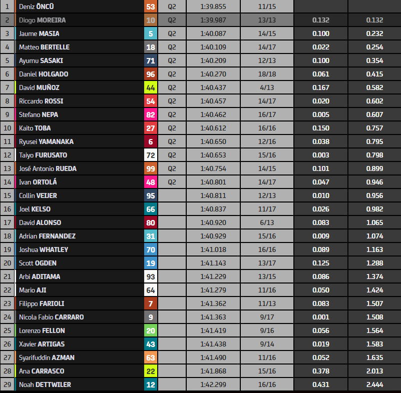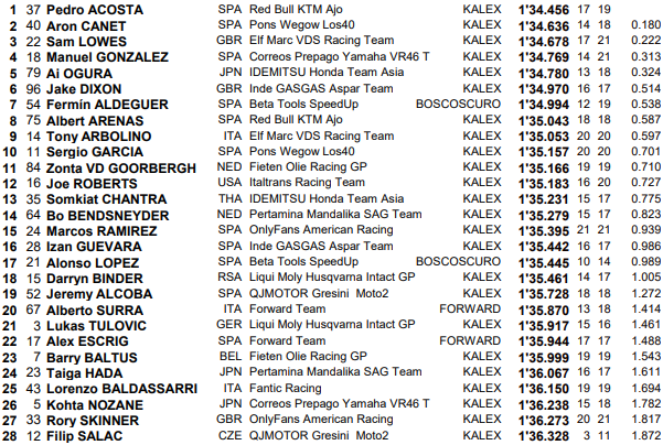 GP d’Indonésie – J1 Moto2 (top-14 provisoirement en Q2) :