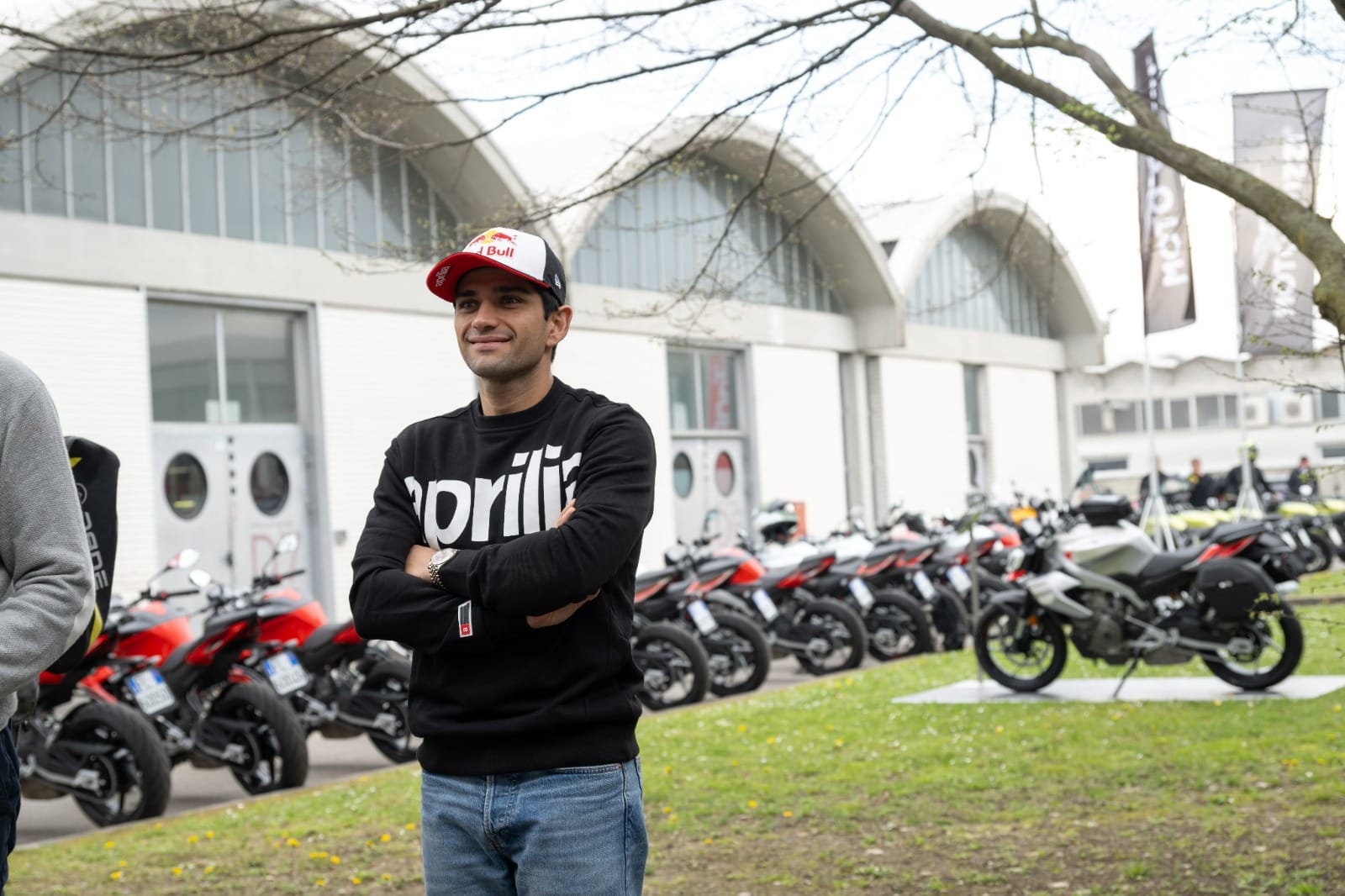 Jorge Martin a participé à la présentation presse de l'Aprilia Tuono 457 à Noale, siège d'Aprilia Racing. Il a pu accueillir les journalistes venus essayer la machine italienne, mais aussi... faire quelques mètres au guidon de la bête !