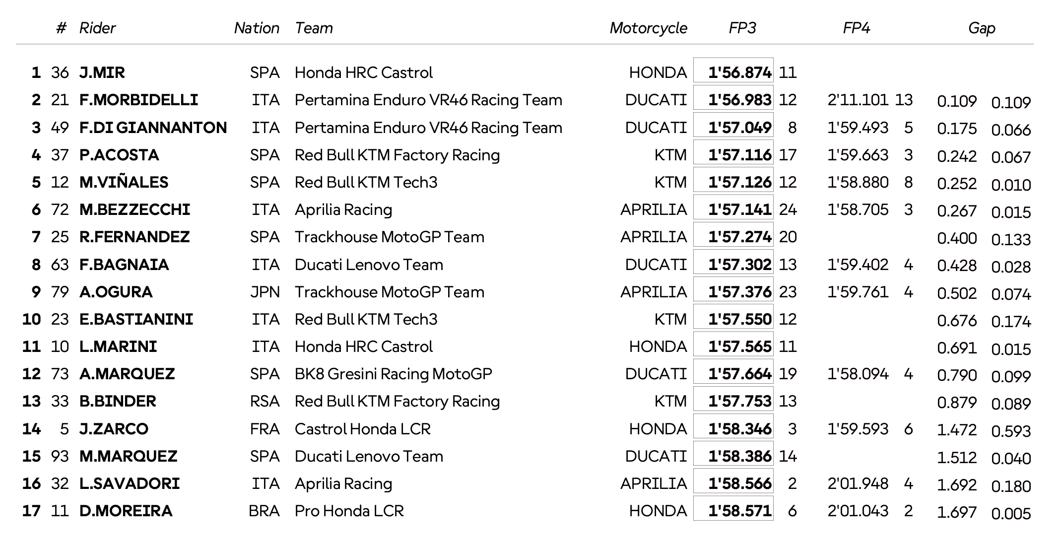 Et au sujet de la dernièr journée, Mir d'ajouter : « Demain, il faut franchir une nouvelle étape et rattraper le temps perdu à cause de la pluie. Pour l'instant, je suis content de ce qu'on a fait, mais il y aura aussi beaucoup de travail après le test. »