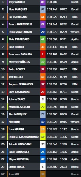 Misano, MotoGP (FP1) : Martin devant Marquez, Quartararo 5e