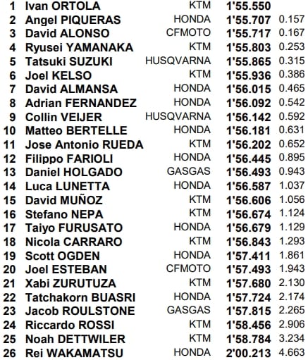 Motegi, Essais 1 Moto3 (top-14 provisoirement en Q2) :