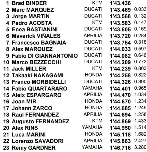 La première journée du Grand Prix du Japon est terminée. On sait qui sont les 10 pilotes MotoGP qui entreront directement en Q2. En Moto2 et Moto3, le top-14 est provisoirement qualificatif en attendant les séances du samedi matin. Découvrez tous les résultats du jour.