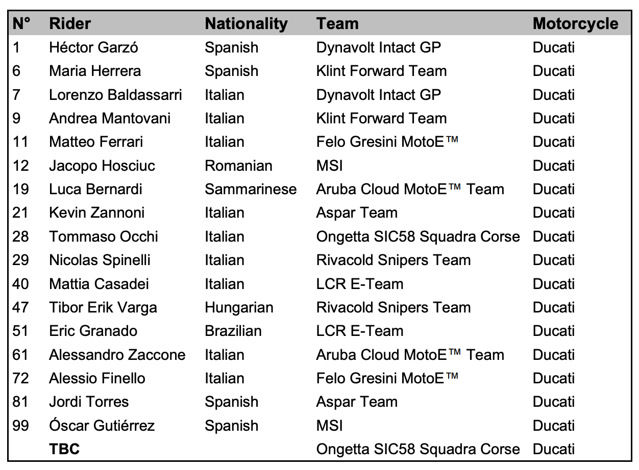 La Fédération Internationale de Motocyclisme a communiqué la liste des engagés pour la saison 2025 du championnat du monde MotoE.