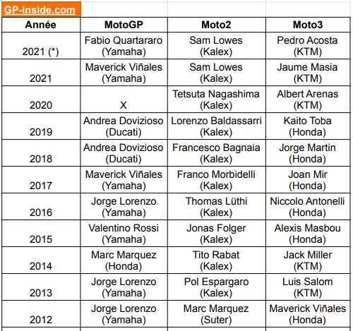 Le circuit de Losail accueille le week-end prochain le Grand Prix du Qatar, qui donnera le coup d’envoi de la saison 2022. Qui a déjà gagnée sur la piste qatarie ? Jorge Lorenzo a le record du nombre de victoires, Fabio Quartararo est le dernier à y avoir triomphé. Découvrez ci-dessous le palmarès complet de l’épreuve.