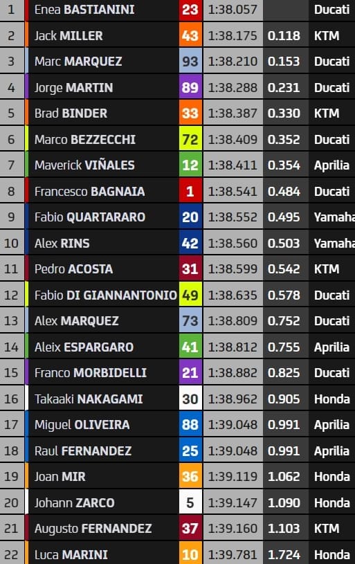 Qui s'est directement qualifié pour la Q2 du Grand Prix du Portugal ? Qui devra passer par la séance de repêchage ? On a la réponse définitive en MotoGP, provisoire en Moto2 et Moto3 en attendant les séances de samedi.