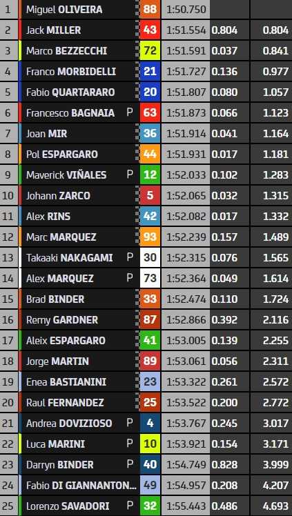 Miguel Oliveira est l’homme en forme du samedi à Portimao. Le Portugais a signé le meilleur temps de la quatrième séance d’essais libres, devant son public. Le soleil brille, la piste sèche et les chronos commencent à approcher les 1’49. Les qualifications, à suivre dans quelques minutes, devraient se dérouler dans les mêmes conditions.