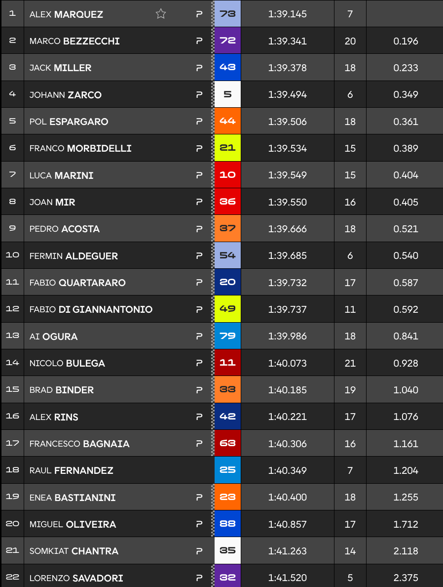 Franceo Morbidelli hérite du sixième temps devant Luca Marini, Joan Mir, Pedro Acosta et Fermin Aldeguer.