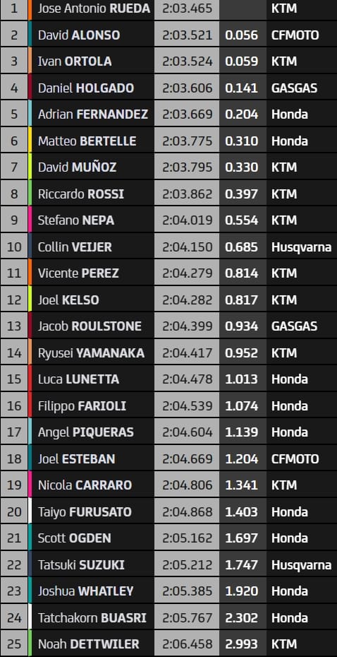 GP du Qatar (Lusail) - Combiné Moto3, top-14 directement en Q2 :