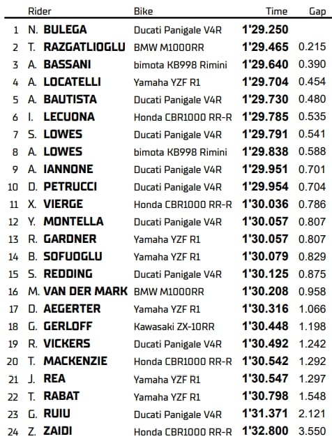 SBK Crémone : Bulega devant Razgatlioglu en FP2