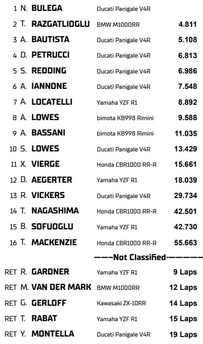 SBK Phillip Island (Course 1) : Bulega trop fort, Razgatlioglu 2e