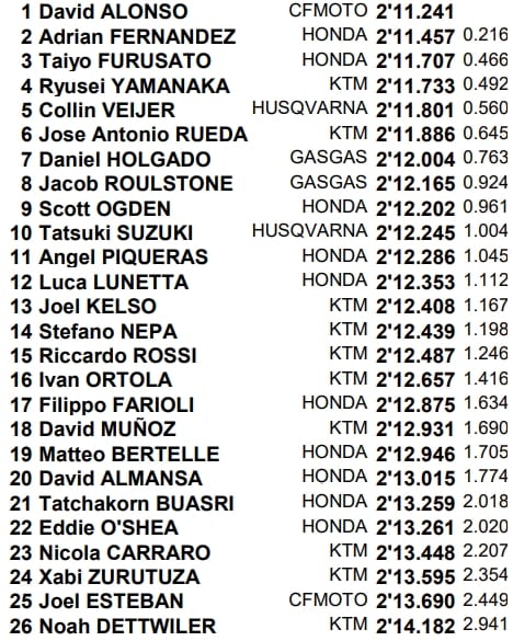 Sepang, Essais MotoGP (top-10 directement en Q2) :