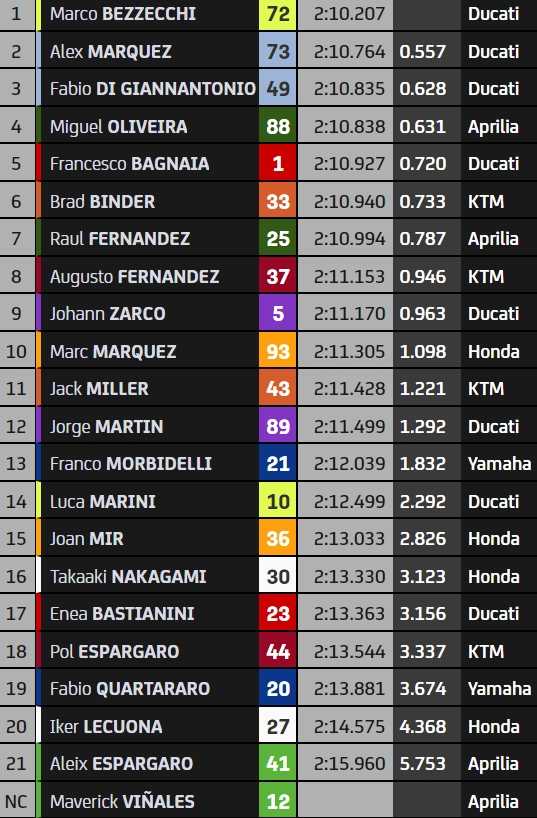 Silverstone, MotoGP (WUP) : Pneus pluie, Bezzecchi meilleur temps !