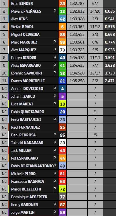 L’événement de ce mardi restait le retour en MotoGP de Marc Marquez, cent jours après sa dernière apparition au Grand Prix d’Italie. Opéré du bras droit le 2 juin, l’Espagnol est remonté sur sa Honda RC213V ce mardi, aux environs de 9h50. Il a effectué un premier run de six tours, avec un meilleur temps en 1’33.561, avant de rentrer aux stands.
