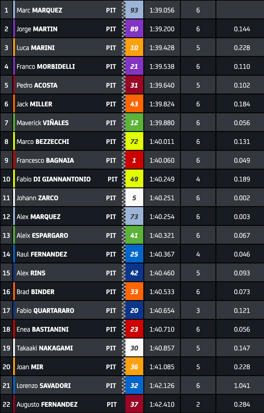 Le Catalan a signé le meilleur temps du Warm-Up à Buriram sur le mouillé devant Jorge Martin et Luca Marini. Francesco Bagnaia est 9e.