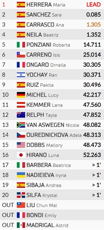 Top-5 Championnat WorldWCR : 1. Maria Herrera 50 pts, 2. Sara Sanchez 36 (-14), 3. Ana Carrasco 36 (-14), 4. Beatriz Neila 24 (-26), 5. Roberta Ponziani 24 (-26)