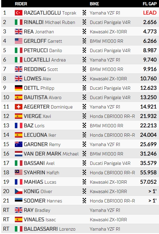 Championnat WorldSBK : 1. Bautista 433 pts, 2. Razgatlioglu 378 (-55), 3. Rea 267 (-166), 4. Locatelli 236 (-197)…