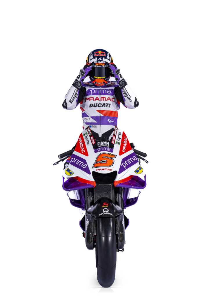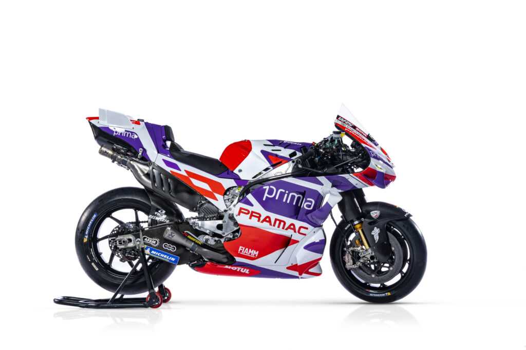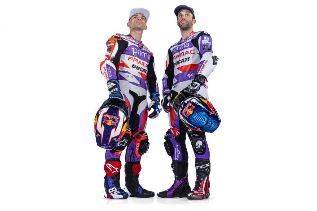 Au tour de l’équipe Prima Pramac Racing de dévoiler les couleurs affichées sur sa Ducati Desmosedici GP23 en 2023. Le Français Johann Zarco et l’Espagnol Jorge Martin se partageront le box du team italien pour la troisième année de suite.